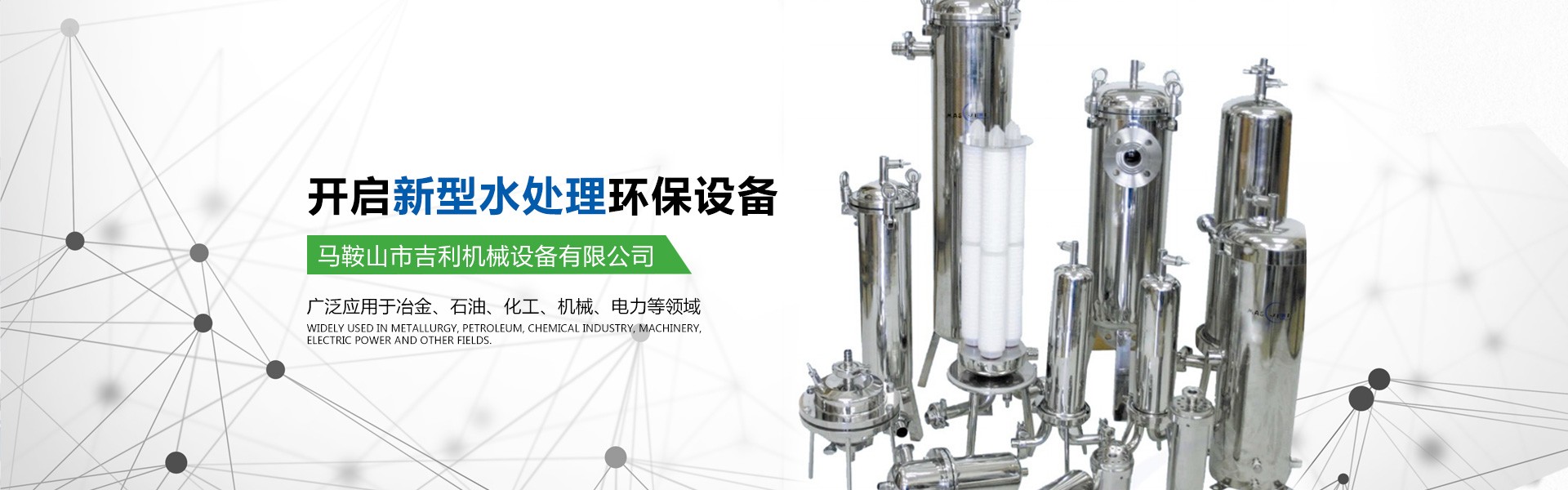 馬鞍山市吉利機(jī)械設(shè)備有限公司位于江南名城一馬鞍山市,交通十分便利。公司具有獨(dú)立法人資格,是集水處理設(shè)備的研發(fā)、設(shè)計(jì)、生產(chǎn)、銷售為一體的專業(yè)型企業(yè)。公司的主要產(chǎn)品有高中速過濾器、纖維球過濾器、新型除油過濾器、無閥過濾器、加藥裝置、管道全自動過濾器、淺層砂過濾器、攪拌機(jī)、沙水分離器、管道靜態(tài)混合器、化水設(shè)備、反滲透等膜處理設(shè)備、空氣過濾器等。公司所研發(fā)的產(chǎn)品有占地少、處理效果好、投資省、操作管理方便的優(yōu)點(diǎn),受到客戶的一致好評。